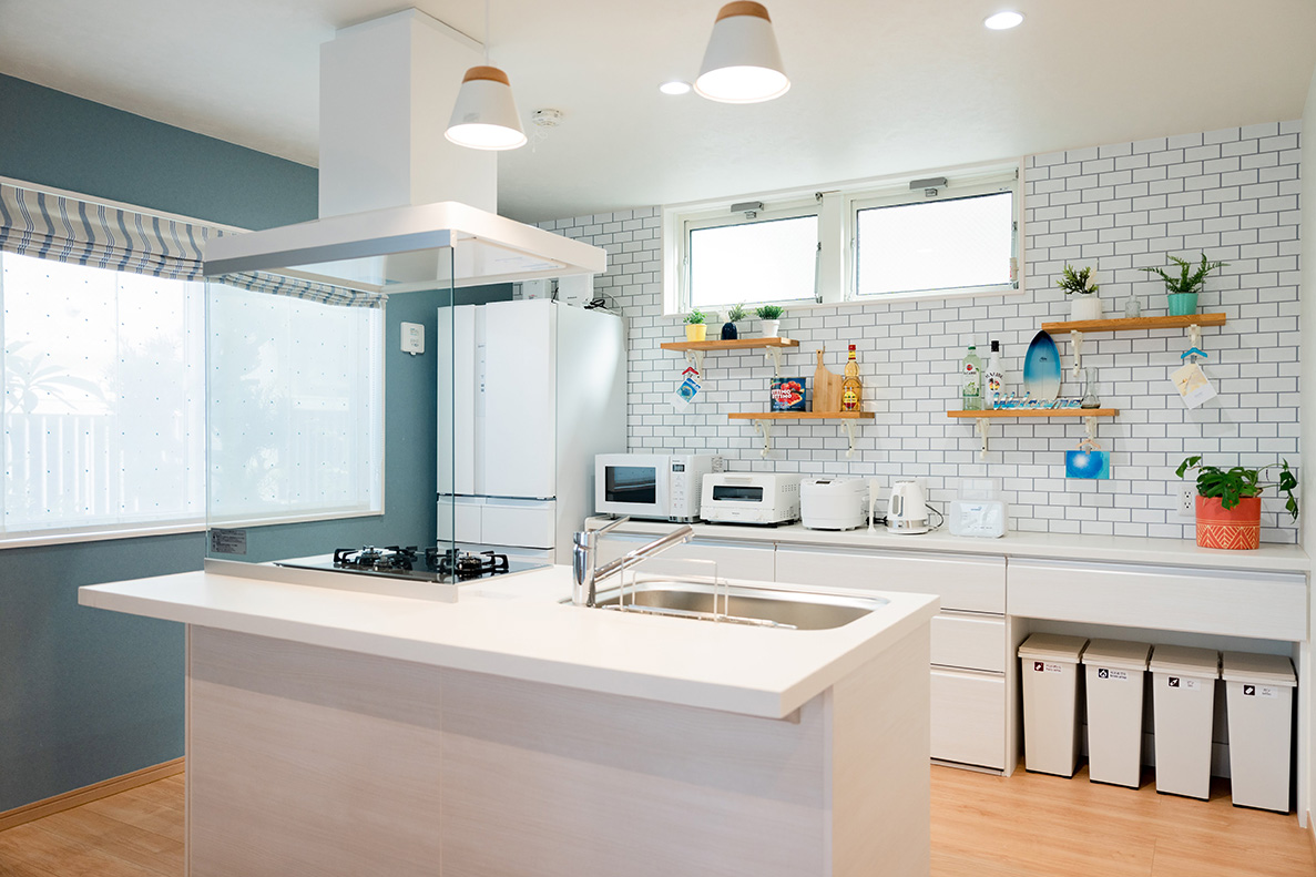 解放感のある吹き抜けのリビングは、暮らす気分を味わえるほか、お子様連れの滞在でも安心です。